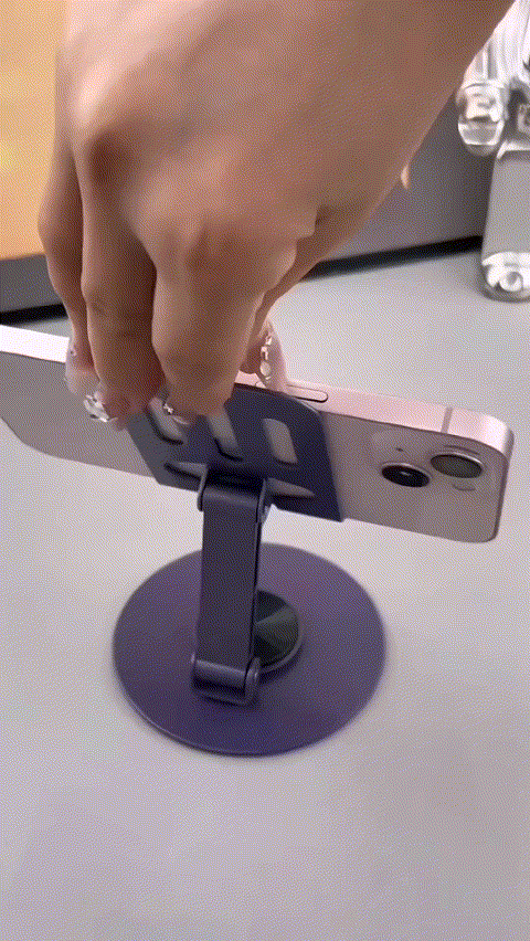 The rotation cellphone stand is all metal, and aluminum, which makes it lightweight and sturdy, can hold most kinds of Apple phones or Android cellphone.