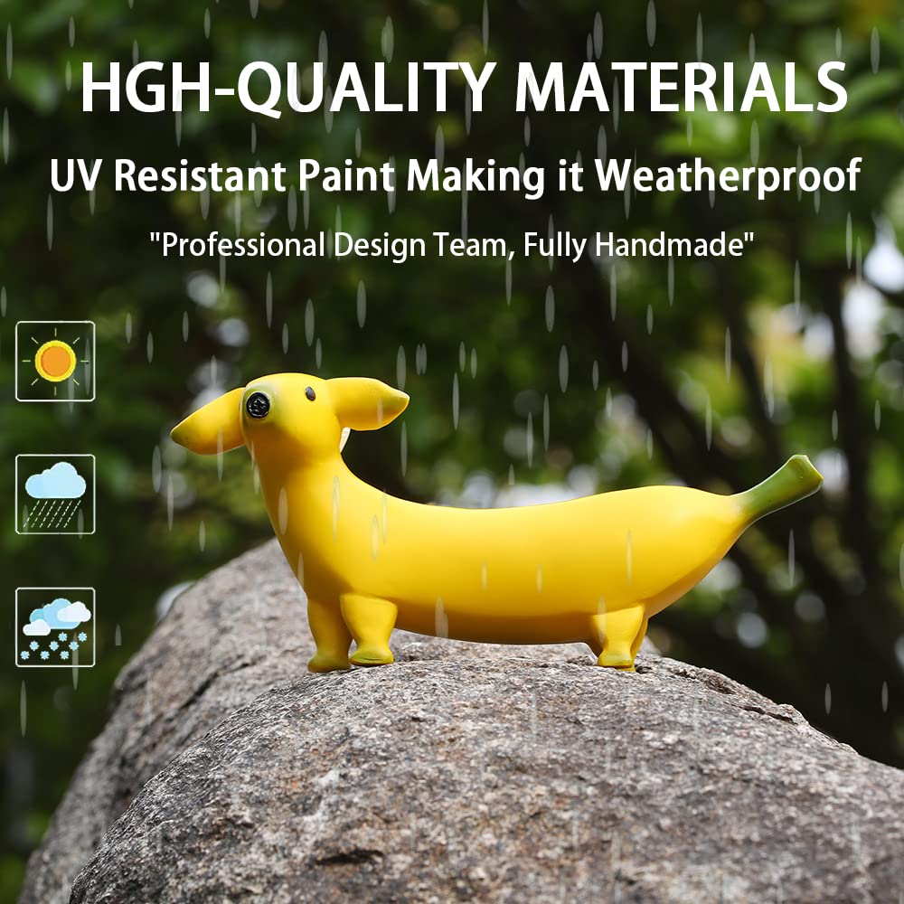 - 👍【Perfect design】The banana dog is hand-made with high-quality resin materials, which has good water resistance, high and low temperature resistance, and is durable. The beauty of the fantastic statues will bring your garden to life.