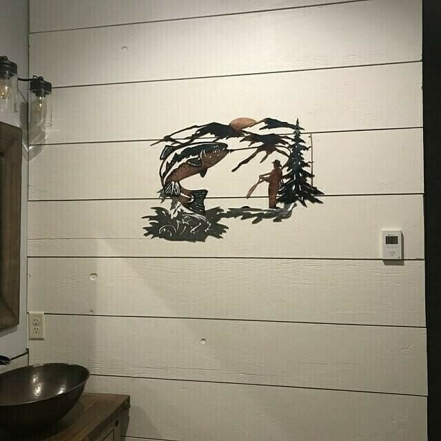 Another unique piece is a perfect depiction of trout fishing in a mountain scene.