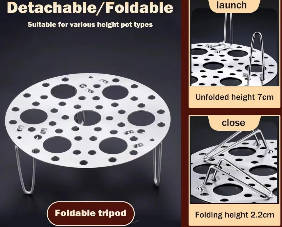 This foldable steaming rack is a must-have in the kitchen. It can be used with pots of all sizes and can also be used as a pot rack steamer.