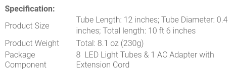 • Length from plug to the first light: 3 61 ft (110 cm)