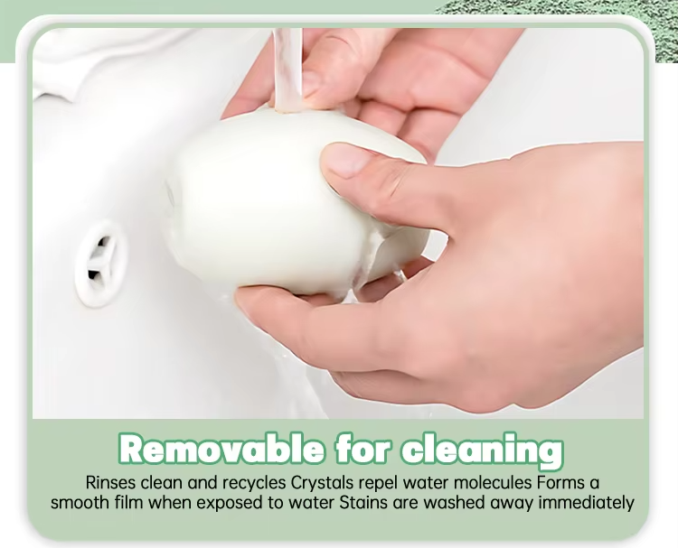 - Reusable and removable for cleaning. After rinsing and draining the water, it can be recycled and utilized, crystals repel water molecules, forming a smooth film in case of water, and the stains are washed away immediately.